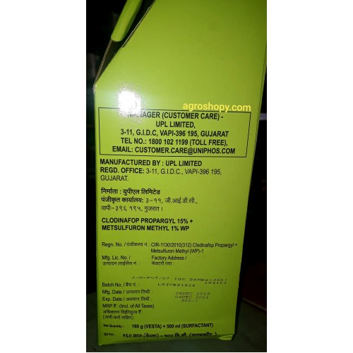 VESTA - CLODINAFOP PROPARGYL 15% + METSULFURON METHYL 1% WP + SURFACTANT - 160 GM + 500 ML