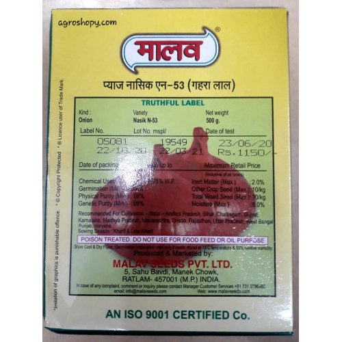 Brand - JINDALVariety - Nasik Red N-53 AdvanceGermination ( Min ) -70 %Physical Purity ( M..