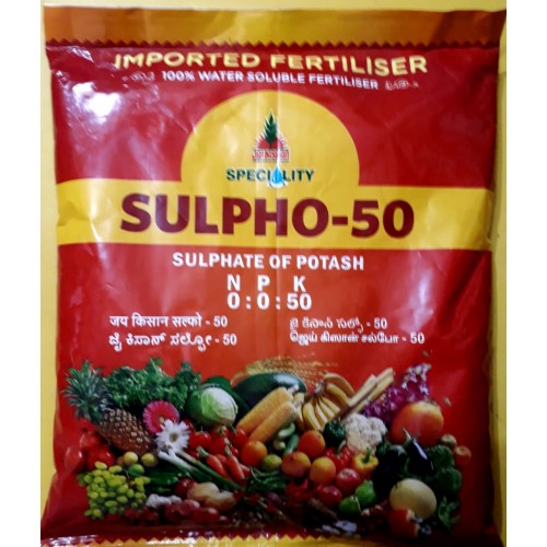 | Crop Benefit - | Sulpho is a specialty fertilizer that contains potash, enriched with sulphur. The sulphur helps improve produce quality and imparts flavor. It also helps in increasing the crop's resistance to insect and disease attack and moisture stress. Sulpho 50 helps in improving sugar content in fruits, size, quality etc. This fertilizer helps in hastening maturity and is chlorine free. |