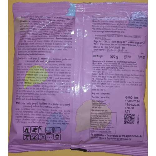 Tags: Matco, Indofil, Metalaxyl, Mancozeb, Downy Mildew, Late Blight, Downy Millet, Phytophthora foot rot, White Rust and Alternaria Blight, Leaf Bligh, Black Shank.