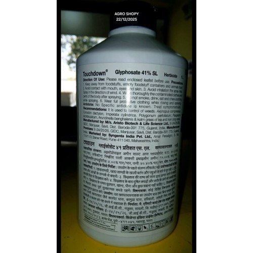 - Active Ingredient: Glyphosate (typically 41% SL in many formulations).